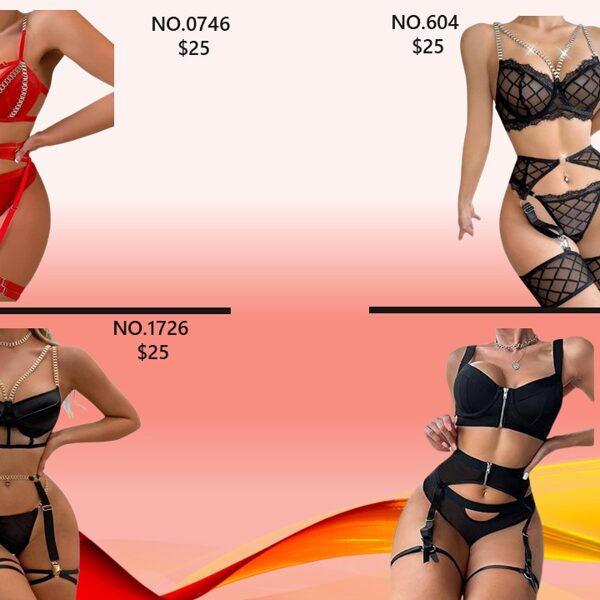 "Explora nuestra exquisita selección de lencería erótica diseñada para realzar tu sensualidad y confianza. Desde conjuntos seductores hasta piezas provocativas, encuentra la prenda perfecta para cada ocasión y sorprende con tu estilo único."